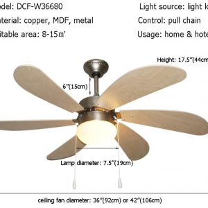 Với thiết kế đẳng cấp, quạt trần đèn kiểu cổ DCF-W36680 sẽ là một điểm nhấn độc đáo cho không gian phòng bạn.