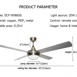 QUẠT TRẦN ĐÈN CÁNH GỖ DCF-W986SS – QUẠT TRẦN TRANG TRÍ THƯƠNG HIỆU