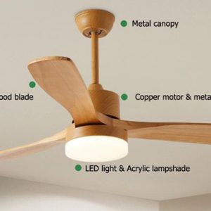 ♦ Quạt trần đèn trang trí được làm từ khối gỗ tự nhiên ghép lại. Có khả năng chống ẩm mốc, mối mọt, không cong vênh. Hoàn toàn phù hợp với thời tiết nhiệt đới ẩm gió mùa của nước ta.
