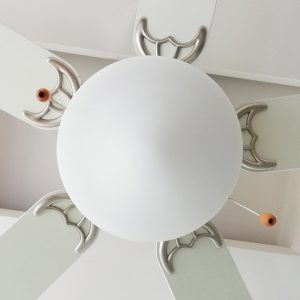 - Quạt trần có gắn thêm thiết bị đèn chiếu sáng vô cùng tiện lợi, chao đèn làm bằng đá cao cấp, mang lại sự đẳng cấp cho căn phòng của bạn. Quạt trần hiện đại trang trí rất phù hợp để lắp đặt tại không gian phòng khách, phòng làm việc, khách sạn.